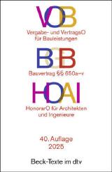 Vergabe- und Vertragsordnung für Bauleistungen Teil A und B / Bauvertrag §§ 650 a-v / Verordnung über Honorare für Leistungen der Architekten und der Ingenieure. Textausgabe. Rechtsstand: 16. Januar 2025